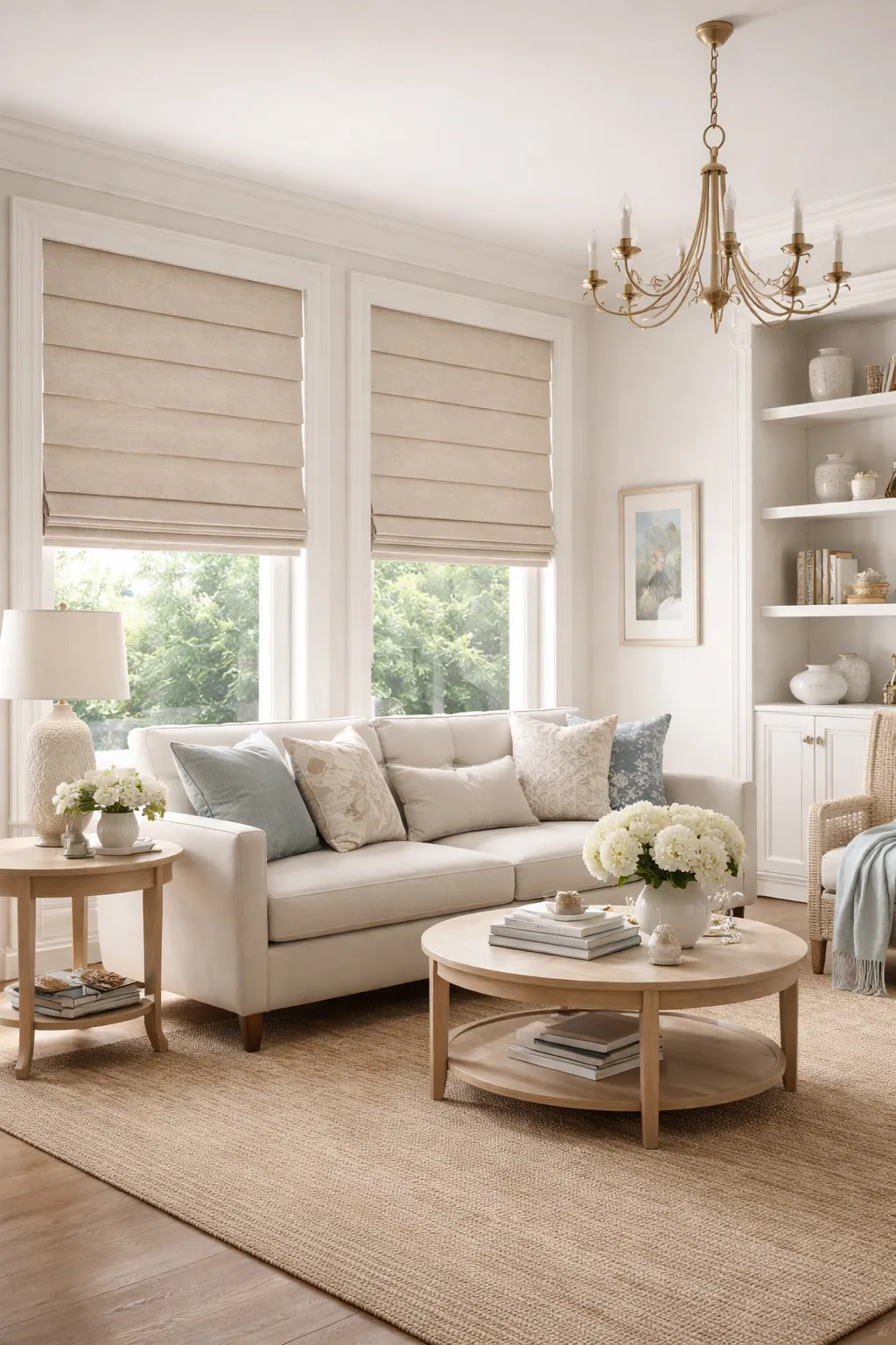 Roman shades can soften harsh sunlight, reduce glare, and make a room feel more inviting while keeping your windows looking elevated.